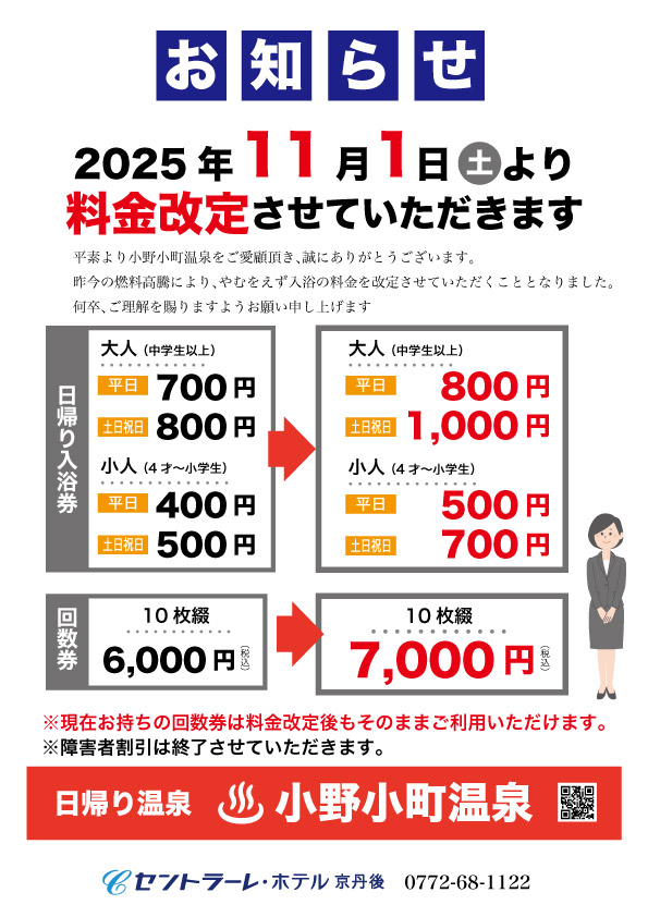 平素より小野小町温泉をご愛顧頂き、誠にありがとうございます。
